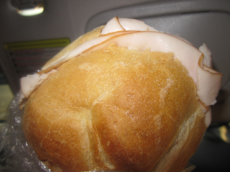 Merenda: panino con arrosto di tacchino e robiola ( in makkina,verso il campeggio)